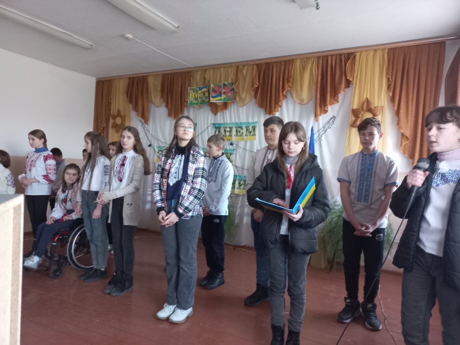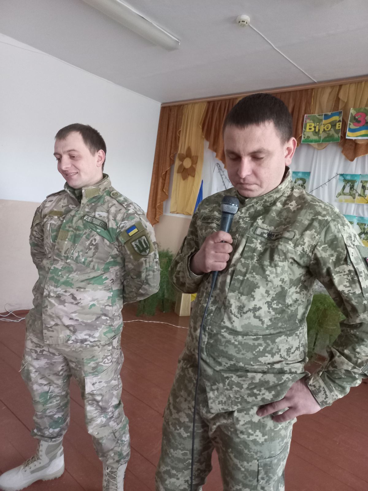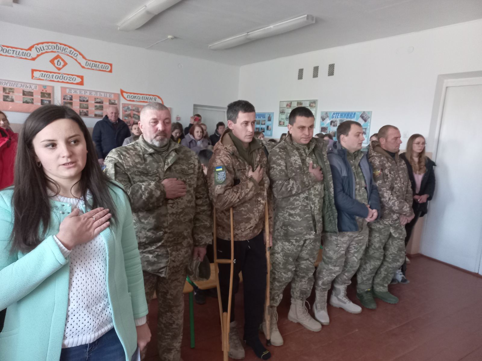 Зустріч,яка зігріла серця...Саме така подія відбулася у Дубенківській гімназії з нагоди Дня Збройних Сил України.Наші мужні воїни-захисники отримали запрошення завітати до школи,послухати щирі слова привітань і пісень.І вони прийшли, щоб відверто, по родинному поділитися своїми нелегкими спогадами пройдених випробувань, пройняти серця,не залишити байдужим жодного у залі.