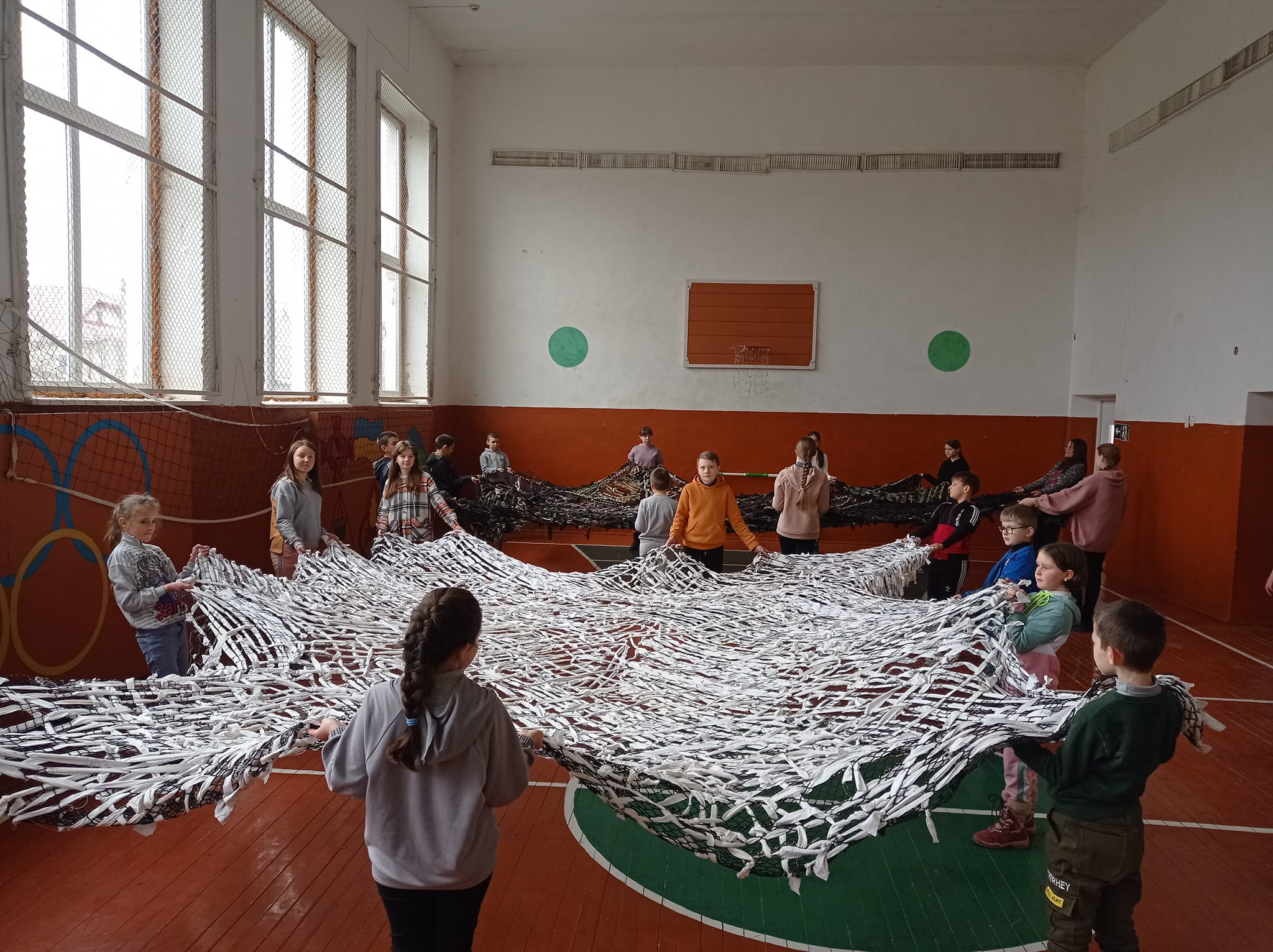Протягом тижня учні та вчителі гімназії плели маскувальні сітки, яких зараз дуже потребують хлопці.