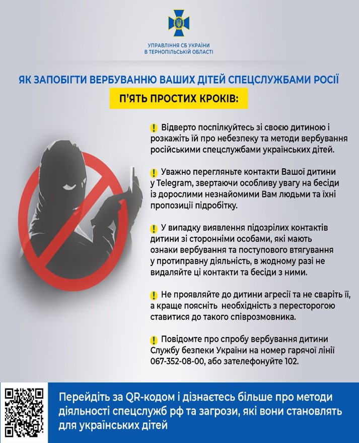 АЛГОРИТМ дій батьків по запобіганню вербуванню дітей спецслужбами росії.