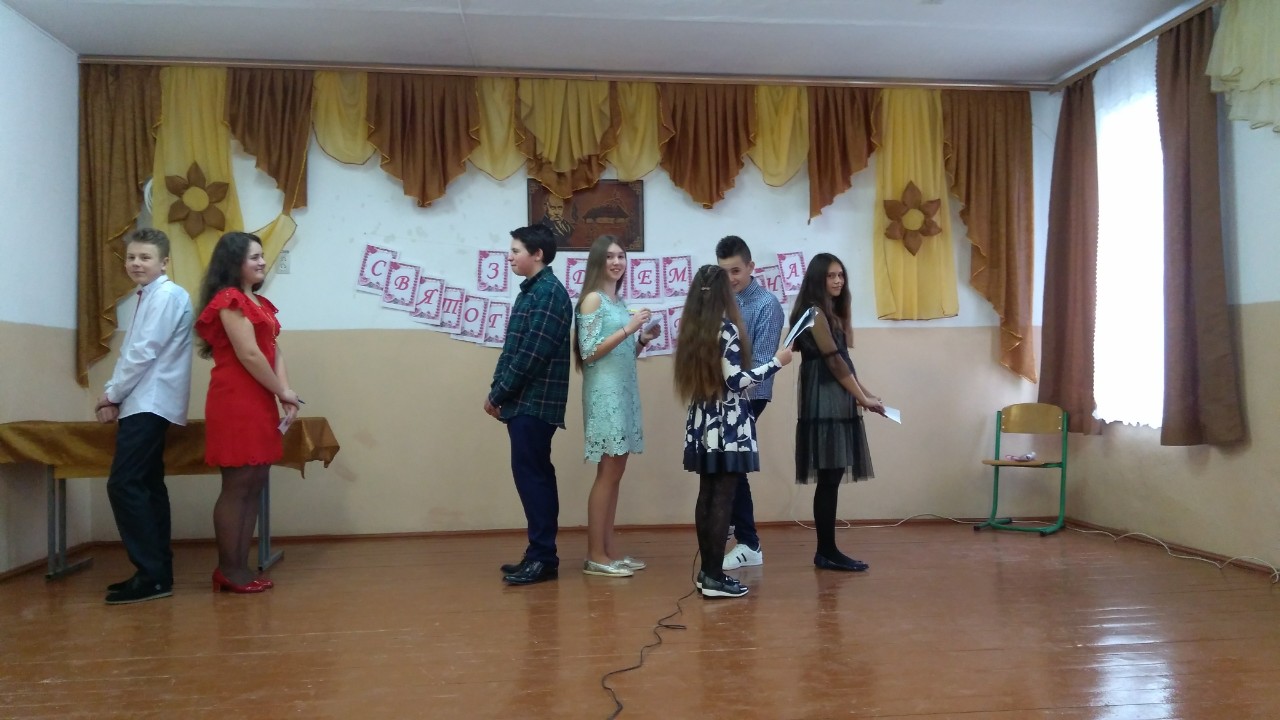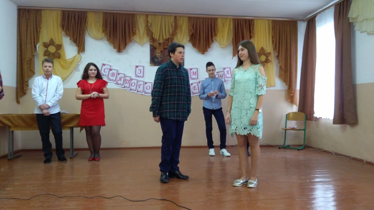 Зі старшокласниками проводили свято у вигляді конкурсів для пар, взявши участь в яких вони могли показати, яка пара найцікавіша. А також проводилися конкурси для болільників, які активно приймали участь, щоб допомогти своїй парі отримати найбільше балів. Свято пройшло цікаво і весело.